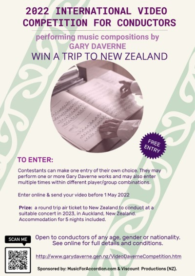 2022 International Video Competition for Conductors performing music compositions by New Zealand composer Gary Daverne.