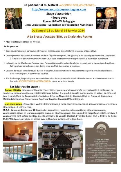 Festival Accords Des Montagnes January 2024 program information above.