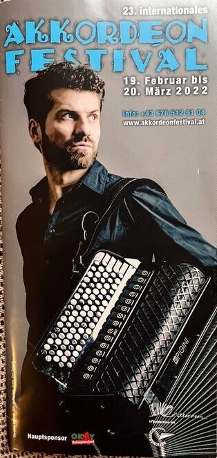 The 23rd International Accordion Festival 2022 will be held in Vienna, Austria from February 19th to March 20th, 2022, organised by Friedl Preisl (picture right).