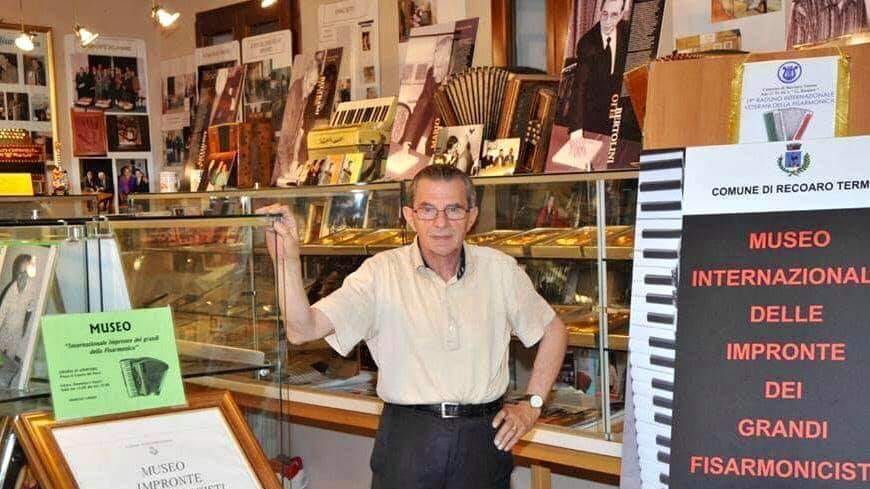 The 2022 International Accordion Meeting will be held in Recoaro Terme, Vicenza, Italy from September 1st to 4th, 2022 organised by Elio Bertolini (picture below) in collaboration with the Museo delle Impronte dei Grandi della Fisarmonica (Museum of Handprints of Accordion Greats – picture right) and the Comune of Recoaro Terme.