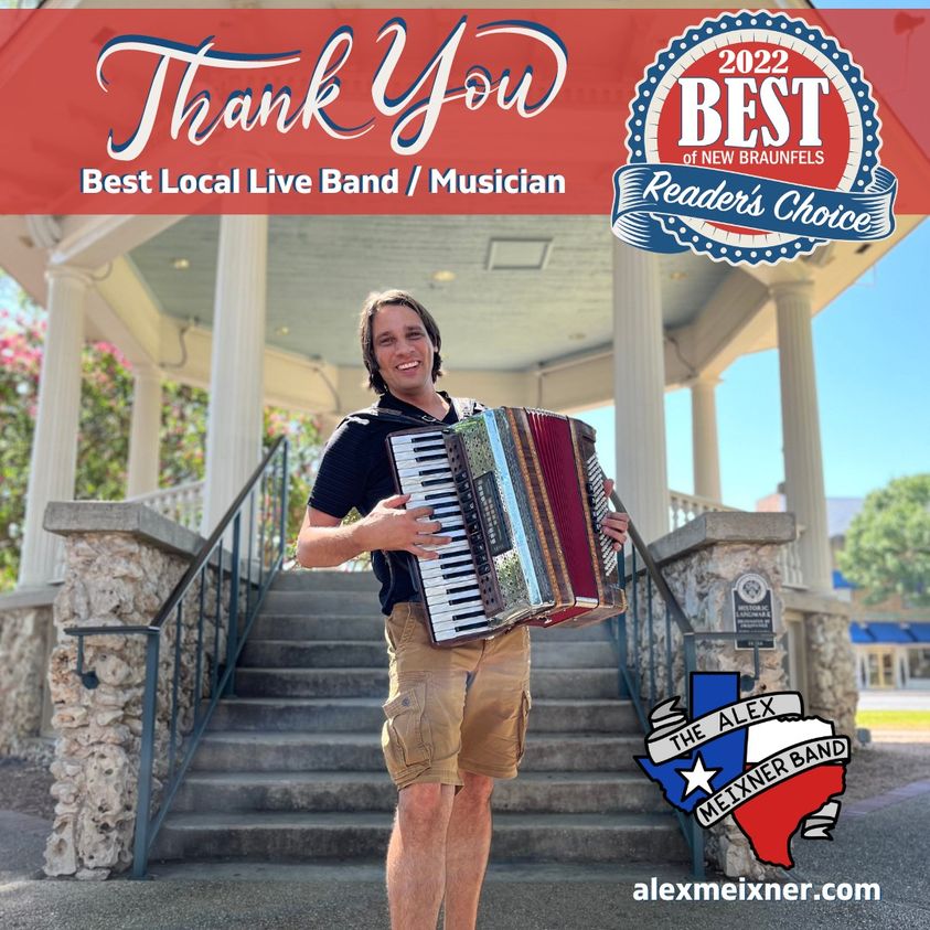 The Alex Meixner Band has been voted “Best Local Live Band/ Musician” by readers of the New Braunfels Herald-Zeitung Newspaper in Texas.