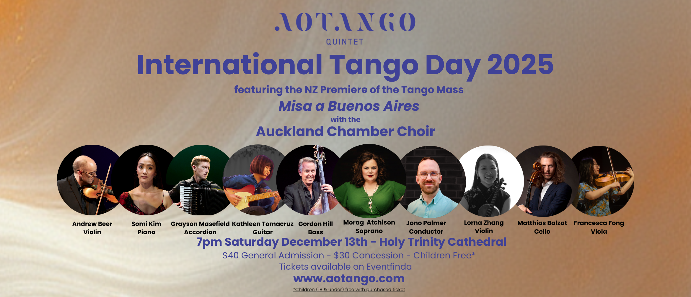 The AOTANGO Quintet will perform at the International Tango Day 2025 celebrations, held at the Holy Trinity Cathedral in Parnell, Auckland, New Zealand on December 13th, 2025, at 7pm.
