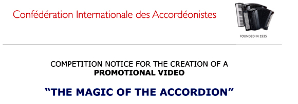 Confédération Internationale des Accordéonistes (CIA) President Mirco Patarini announces the competition for the creation of a promotional video “The Magic of the Accordion”.