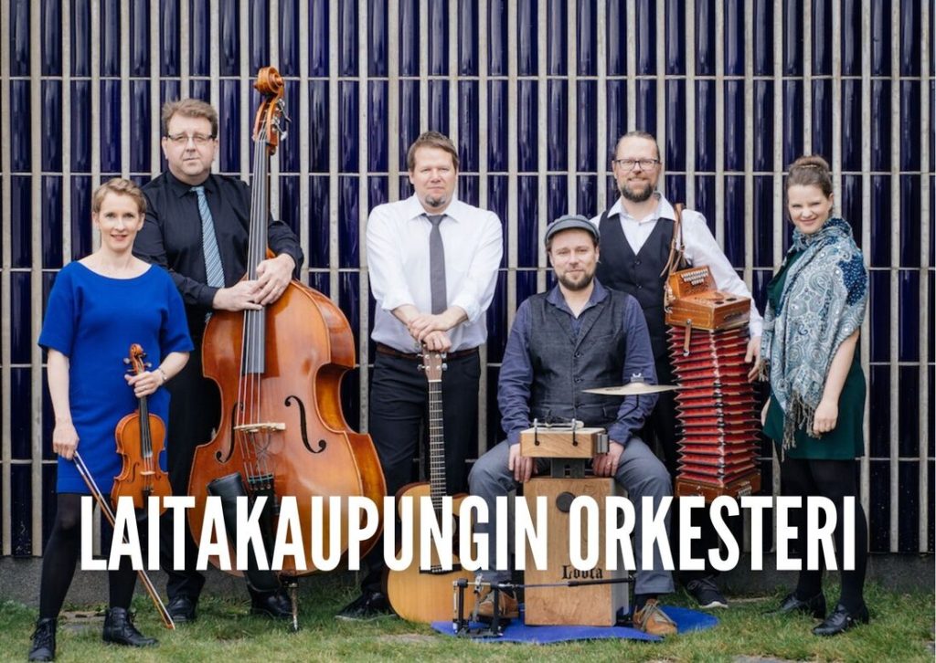 Helsinki Ceilidh Band (picture above right), Nope folk group with accordionist Virve Yli-Savola, Duo Hannu Oskala (accordion) and Paula Susitaival (violin), Jaakko Laitinen & Väärä Raha which includes accordionist Marko Roininen, Laitakaupungin orkesteri (picture below) which includes accordionist Antti Paalanen, Loiskis which includes accordionist Marianne Oivo and Jaakko Laitinen & Väärä Raha Band which includes accordionist Marko Roininen.