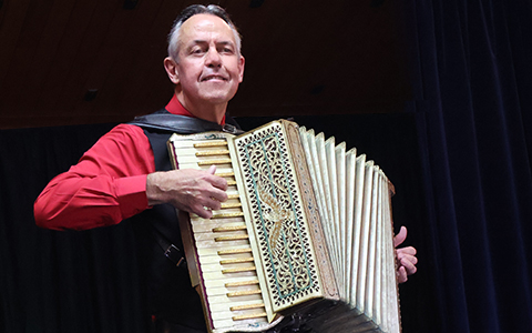 In a surprise for the audience, Maurice Jones joined Kevin with a second Scandalli Butterly accordion |