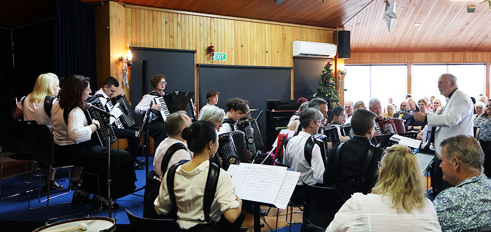 | Kevin Friedrich & Lionel Reekie (accordions) - Song of Peace by Gary Daverne (with Nolene Osbaldiston, piano) - Overture to a Merry Christmas by Mozart & J. L. Pierpont, arr. K. Friedrich |