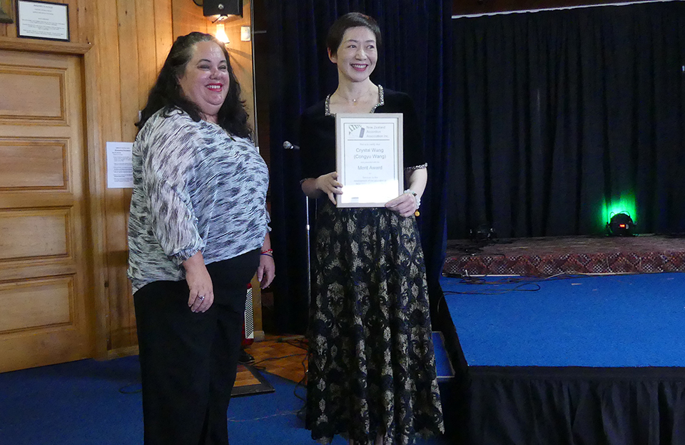 | Presentation by Sonja Palinich (NZAA President): NZAA Merit Award - to CongYu (Crystal) Wang (China) |