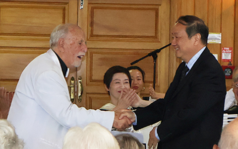 | Gary Daverne congratulating Professor Li Cong and Cong Yu (Crystal) Wang | |