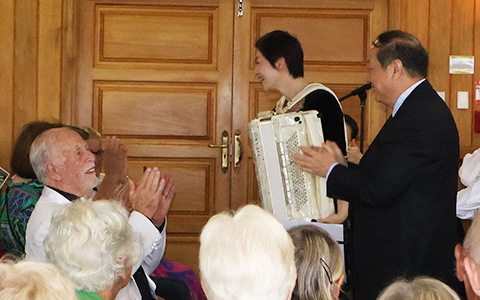 | Professor Li Cong conducting the North Shore Accordion Orchestra, Cong Yu (Crystal) Wang, soloist | |