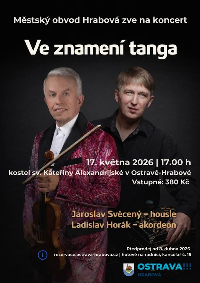 Ladislav Horák (accordion) and Jaroslav Svěcený (violin) will perform a duo concert of tango pieces at the Church of St Catherine of Alexandria in Hrabová, Ostrava, Czech Republic on May 17th, 2026 from 5pm.