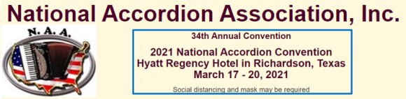 The National Accordion Association (NAA) will hold their 34th annual National Accordion Convention at the Hyatt Regency Hotel in Richardson, Texas from March 17th to 20th, 2021.