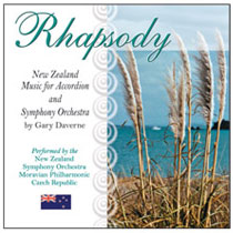 Rhapsody CD. The accordion soloists are Bernadette Conlon, Kevin Friedrich, Stephanie Poole, Mary Tokarski, performing with the New Zealand Symphony Orchestra or the Moravian Philharmonic, Czech Republic. Download album only € 9,00 Catalog: nzom004