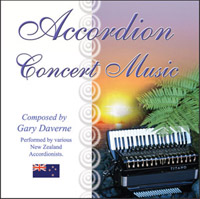 Concert For Accordion CD features solo, duet, ensemble and accordion compositions by Gary Daverne performed by the Air New Zealand Accordion Orchestra, Harley Jones, Maurice Jones, Sarah Langley, Stephanie Poole and Lionel Reekie. Download album only € 9,00 Catalog: nzom003