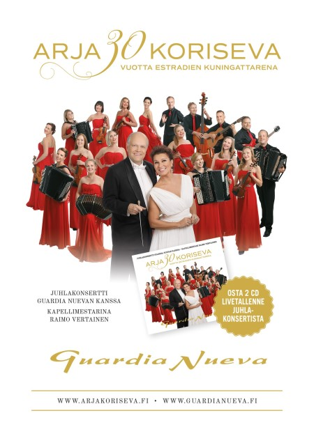A new live double CD by Guardia Nueva (conducted by Raimo Vertainen) and vocalist Arja Koriseva will be released on May 14th, 2021 to celebrate the 30th anniversary of Guardia Nueva.