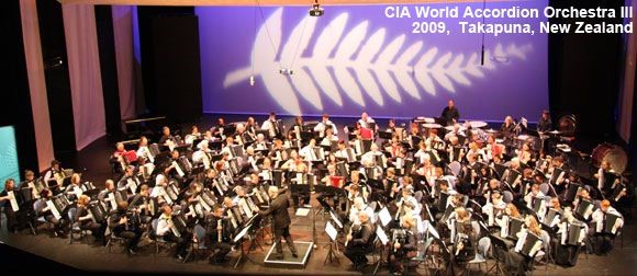 The members of the CIA“World Accordion Orchestra VI” will again include musicians from many different countries – including the President Raymond Bodell (Concert Master) and many officers of the Confédération Internationale des Accordéonistes (CIA) and delegates attending the 128th CIA Congress.