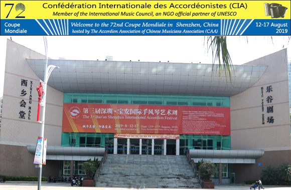 Confédération Internationale des Accordéonistes (CIA) President Mirco Patarini and CIA Secretary General Kimmo Mattila welcome everyone, and for those not able to attend, Daily Reports, pictures, information and videos of the contestants plus all the results will be online when they are announced.