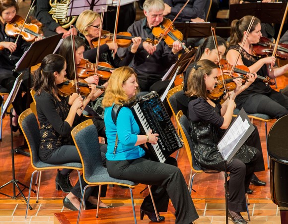 “In 2011 Bach Musica collaborated with the John MacKay Jazz Trio and accordionist Stephanie Poole in a fusion of jazz and classical music. We received many requests for a repeat concert. Today’s program introduces further arrangements by John MacKay, two works by Piazzolla with Stephanie Poole and a world premiere of a work by Michelannne Porster and John MacKay that pays homage to Bach.”