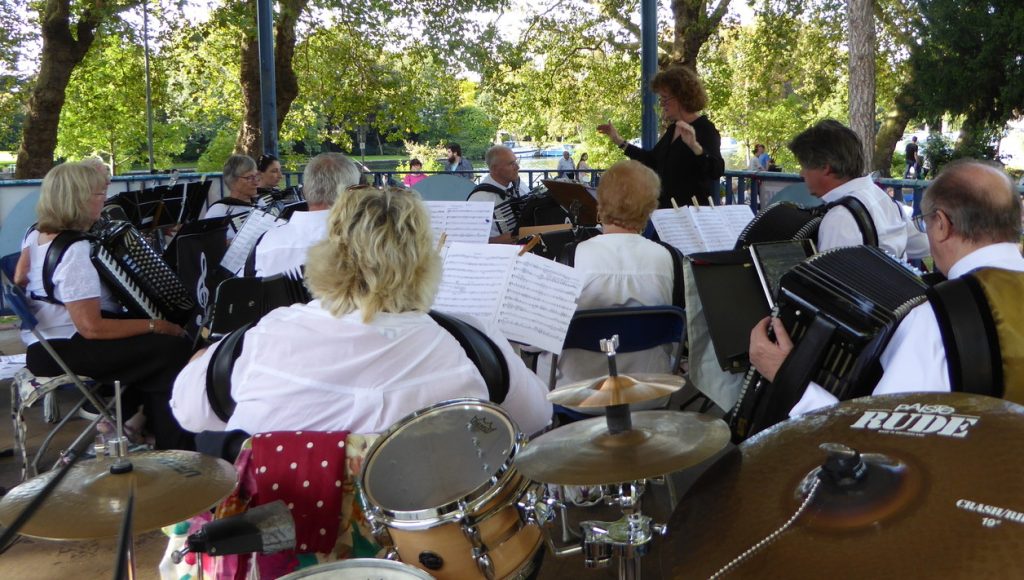 Tillingbourne Accordion Orchestra plays at Canbury Park Bandstand, Kingston – UK