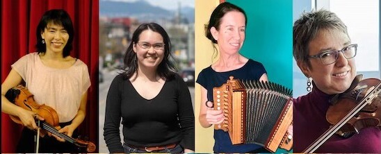 The group includes Vancouver-area musicians with a shared passion for vibrant folk traditions: Jenny White (accordion and concertina), Prairie Wolfe (violin), Sandy Eix (piano) and dance caller Katie Pinter.