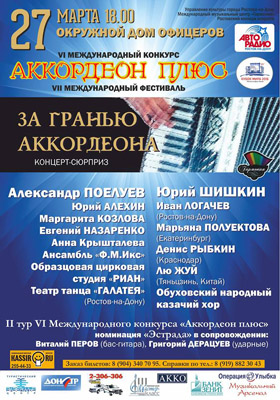 27 March “Accordion Fringe” concert during the 2016 International Competition and Festival “Accordion Plus” from 26th to 30th March 2016 in Rostov-on-Don, organised by the International Music Centre “Harmony”.