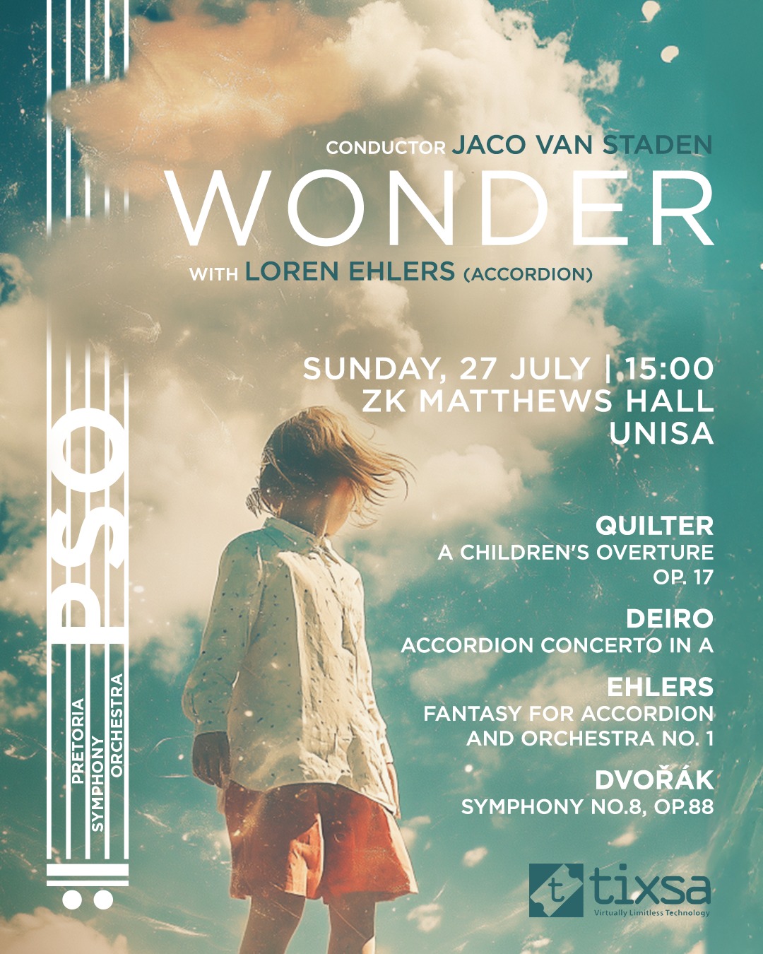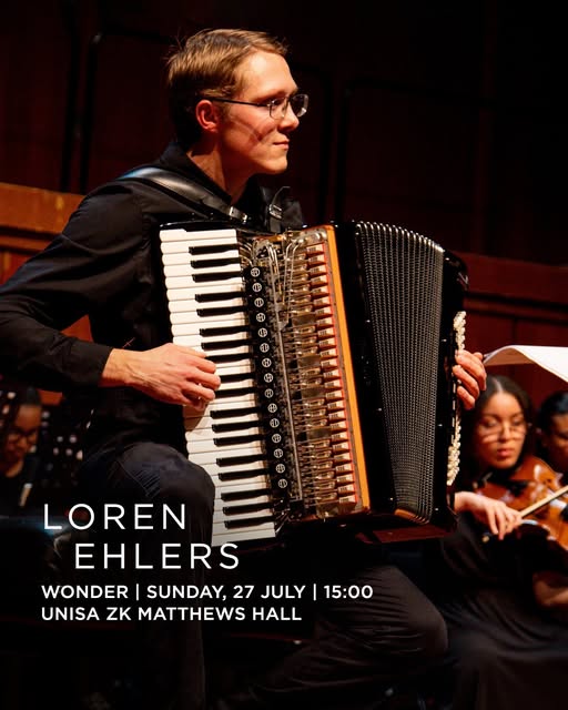 Accordionist Loren Ehlers will perform with the Pretoria Symphony Orchestra (PSO) conducted by Jaco Van Staden at their “Wonder” Accordion Concert held at the ZK Matthews Hall, Unisa (University of South Africa), Pretoria, South Africa on July 27th, 2025 from 3pm to 5pm.