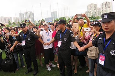 | CIA Ambassador Kevin Friedrich and CIA Presidnet Raymond Bodell Above right: with more than 2,000 players, there were twice as many family members and friends wanting to photograph the proceedings, which required security guards to manage the crowds |